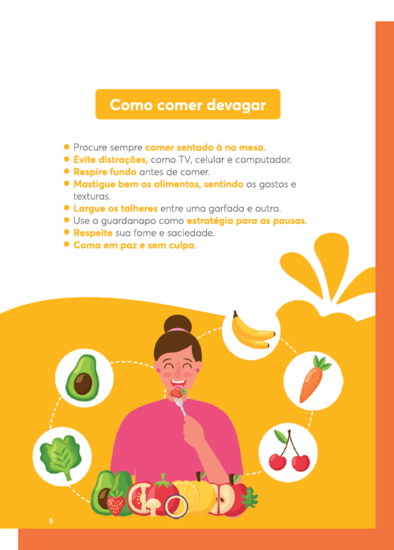 Caderno de receitas em formato digital E-book e impresso com as receitas do projeto, para o acompanhamento dos pacientes durante as aulas práticas.
